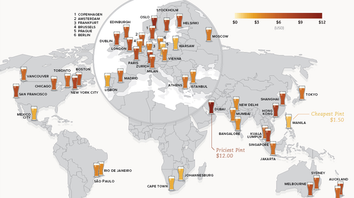 Сколько стоит 0.5 пива в разных странах мира.