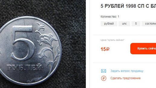 И Московский, и Санкт-Петербургский монетные дворы выпускали монеты номиналом 5 рублей в огромном количестве. В каталогах большая часть "пятирублевок" 1998 года стоят не более 5 рублей, то есть по номиналу. Но редкие монеты есть везде, и в этом случае их тоже можно отыскать За экземпляры со штемпельным блеском можно выручить сумму чуть большую, но это не тот вариант. который нас сейчас интересует. 5 рублей этого года до недавнего времени считались самыми бесперспективными в плане поисков раритета среди "ходячки"...