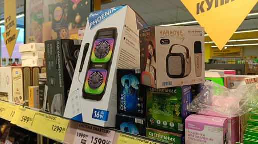 Здравствуйте, дорогие подписчики нашего семейного канала! Очередной четверг в "Чижике" продемонстрировал, что магазин не собирается уступать свои позиции конкурентам. На полках появились новинки и скидки, к которым мы уже привыкли. Особенно выделяется хозяйственный отдел, где ассортимент значительно расширился, и многие покупатели внимательно изучают товары и сравнивают цены. И в этом обзоре, делюсь с вами увиденным в "Чижике" города Крымск. Портативная акустическая колонка с микрофоном для караоке и 5 режимами звучания...