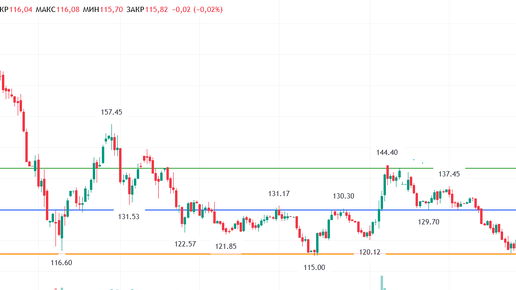 Бывают шпильки вниз к 114, 112 рублям, которые очень быстро выкупаются.