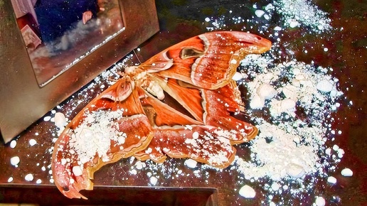 Материализация огромной бабочки "Atlas" 20см в доме Голландии зимой с порошком гидромагнезита