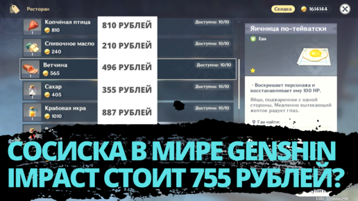 Сколько стоят продукты в Genshin Impact в переводе на рубли?