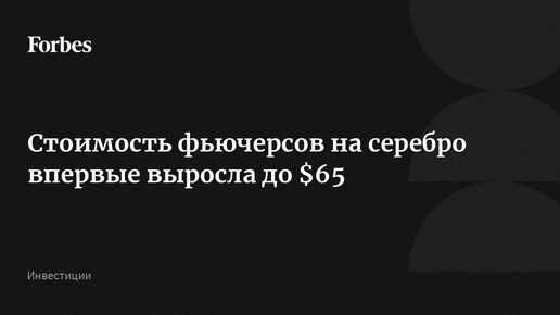 Стоимость фьючерсов на серебро впервые выросла до $65