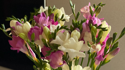 Периодически проводим эксперименты - как себя чувствуют срезанные цветы дома, как за ними ухаживать, сколько живут, какие особенности... Сегодня мы тестируем фрезию :) Решено было приобрести на пробу 2 цвета - белый и розовый, по 10 шт...