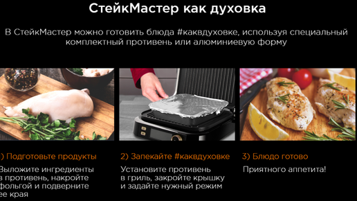 Компания Redmond выпустила новый классный прибор для кухни, сочетающий в себе функции гриля, духовки и барбекю. Посмотрите на дизайн стейкмастера в галерее. Стейкмастер включает в себя 7 автоматических программ приготовления идеальной пищи, а также настраивать программы можно вручную. В комплекте имеется противень с антипригарным покрытием. Не удивляйтесь тому, что блюда в гриль-духовке готовятся быстрее, чем в духовом шкафу: всё дело в высокой теплопроводной форме. Если вы считаете,...