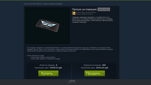 Всем привет, с вами kilovolt. Сегодня я хочу поговорить про операции в CS:GO, которые уже давно закончились. Посмотрим на них цены и глянем, когда они выходили. 1. Пропуск операции «Авангард» Данный пропуск вышел 11 ноября 2014 и действовал по 31 марта 2015...