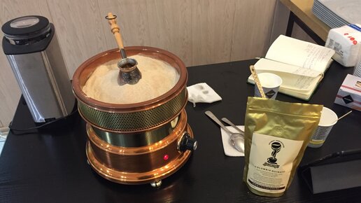 Когда варю кофе по восточному, на песке, то слегка удивлённые такому методу варки люди, спрашивают: "Сколько такая штука стоит?"и потом добавляют: "Вот бы такую домой, где её можно купить?" Скажу честно, когда я только начинал свою деятельность, я тоже думал: "Наверное, прикольно иметь такую вещицу у себя дома". Но быстро понял, что дома иметь подобный аппарат не очень удобно. Сейчас объясню почему. Во-первых. Аппарат всегда должен быть горячий, иначе он не будет разогревать песок, соответственно кофе невозможно будет приготовить...