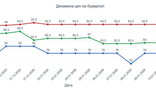 Цены оказались очень переменчивыми, особенно в период с 29 декабря по 2 января. Это время индексаций и поиска нового рыночного равновесия после Нового года. Давайте посмотрим на три крупные сети: 📍 Здравсити стабильно удерживает премиум-позицию по Корвалолу — их цена на 13% выше среднерыночной. 📍 Ригла — наша «золотая середина» (медиана), но даже у них в праздники цены динамично менялись...