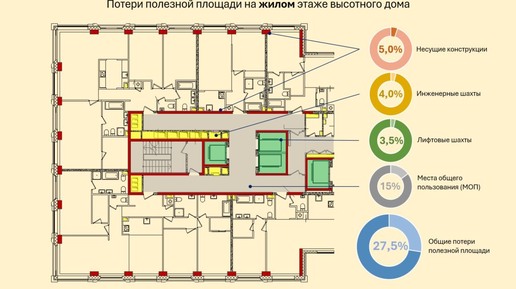 Что ж, давайте посчитаем – не зря же мы из инженерной компании. Потери полезной площади В стоимость каждого квадратного метра квартиры заложены...