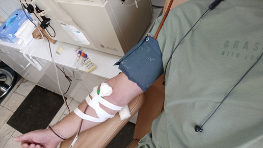 Уже 17й раз за год сдал донорскую плазму крови. Как это происходит. Пришел на станцию переливания. Их в Челябинске две. Я хожу в ту, где сдают плазму. Записываться нужно заранее. Минимальный перерыв между сдачей плазмы должен составлять 14 дней. Но желающих гораздо больше. И по факту я хожу один раз в 3 недели. Иногда раз в месяц. На входе в регистратуре заполняю бланк. Далее гардероб. Раздевшись иду на мед.осмотр. Берут кровь из пальца, меряют гемоглобин. Давление. Спрашивают чем питался последние сутки...