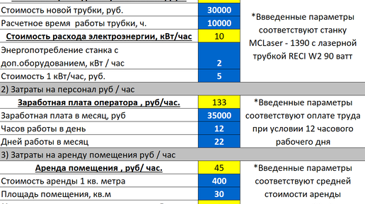 Чтобы определить себестоимость конечного изделия, созданного на лазерном станке необходимо учесть все возможные затраты. Наши специалисты подготовили для вас калькулятор, который поможет вам произвести расчет стоимости лазерной резки и гравировки любого материала, будь то фанера, металл, бумага, ткань, кожа, картон, пластик, и любые другие. Пользуясь этим инструментом вы сможете понять, какие расходы необходимо закладывать в конечную цену выпускаемой вами продукции, а также время окупаемости вашего лазерного станка...