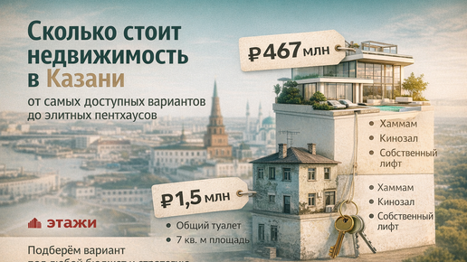 Рынок недвижимости Казани — это всегда контраст. В одном сегменте можно найти небольшие студии со статусом комнаты и общими зонами, а в другом — пентхаусы с собственным лифтом, хаммамом и видом на Кремль. Эксперты компании «Этажи» разобрали, сколько сегодня стоит жильё в городе, кто покупает разные форматы и какие объекты продаются быстрее. По данным открытых площадок, самые бюджетные предложения в Казани стартуют примерно от 1,5–1,8 млн рублей. Это, как правило: Такие квартиры чаще расположены в Кировском районе, Дербышках и локациях, удалённых от центра...