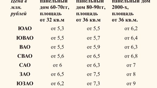 Сколько стоят самые дешёвые квартиры в панельных домах по округам Москвы
