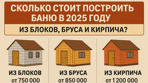 Сколько стоит построить баню в 2025 году: из блоков, бруса и кирпича
