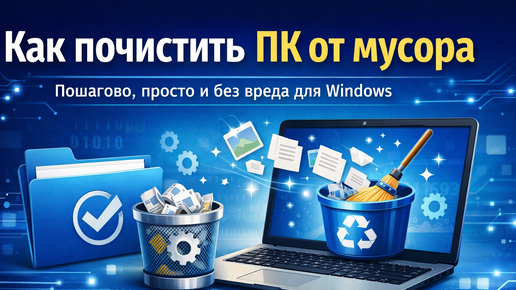 Со временем любой компьютер начинает работать медленнее. Накапливаются временные файлы, кэш, остатки удалённых программ, ненужные загрузки и прочий цифровой мусор. Из-за этого может уменьшаться свободное место на диске, дольше загружаться Windows и даже появляться подвисания в обычной работе. Хорошая новость в том, что в большинстве случаев компьютер можно почистить самостоятельно, без сложных программ и без риска что-то сломать. В этой статье покажу пошагово, как почистить ПК от мусора встроенными средствами Windows и на что обратить внимание, чтобы не удалить ничего важного...