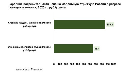 В ходе ежемесячного мониторинга розничных (потребительских) цен на модельные стрижки для мужчин и женщин, проведенного NeoAnalytics, выяснилось, что на основании данных официальной статистики сегодня средняя потребительская цена на модельную стрижку для женщин составляет 858,4 руб., а для мужчин – 653 руб. за услугу. В целом в 2025 г. динамика средних цен на модельные стрижки, включая мужские и женские, в России замедлилась после интенсивного роста несколькими годами ранее. Пик прироста на женские стрижки пришелся на 2022 г...