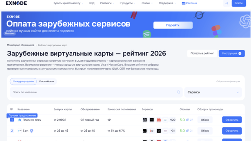 Подписка пс плюс в 2026 году заметно подорожала, а оплатить ее российской картой по-прежнему невозможно. Единственный рабочий способ — использовать виртуальную карту иностранного выпуска, но среди десятков сервисов легко запутаться в тарифах и условиях. Мониторинг виртуальных карт Exnode решает эту задачу: собирает актуальные предложения в одном месте, позволяет сравнить комиссии и выбрать оптимальный вариант за пару минут. В этой статье разберем, сколько стоит подписка пс плюс на каждом уровне,...