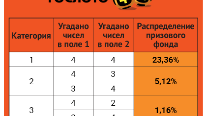 Данная лотерея на мой взгляд является самой интересной из всех представленных лотерей у Столото. Так получилось потому, что сумма выигрыша в ней довольно часто выше затраченных средств хотя бы рублей на 30-50. К тому же выигрышных категорий у этой лотереи больше всего, следовательно хоть какие-то шансы всё же имеются. Получается чтобы выиграть, нужно угадать 2 числа из выбранных 8. Если угадано 3, то сумма билета вернётся вам обратно. Советуют покупать сразу несколько билетов на один розыгрыш, потому что это якобы лучше, чем растягивать по одному билету на тираж/день/неделю...