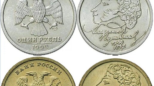 В 1999 году исполнилось 200 лет со дня рождения солнца нашей поэзии - Александра Сергеевича Пушкина. К этому знаменательному событию Центробанк решил отчеканить памятную монету, достоинством в 1 рубль. Пять миллионов экземпляров отчеканил СПМД (Санкт-Петербургский монетный двор) и пять - ММД (Московский). Оформление реверса одинаковое у обоих монетных дворов: автопортрет поэта (написанный им в промежутке 1827-1830 годов), под ним имя и фамилия, в самом низу годы жизни. Аверс же образца 1997 года различается на монете только товарным знаком монетного двора, соответственно СПМД и ММД...