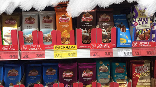 Смотрим цены на шоколад в Пятерочке. Изобилие желтых ценников!