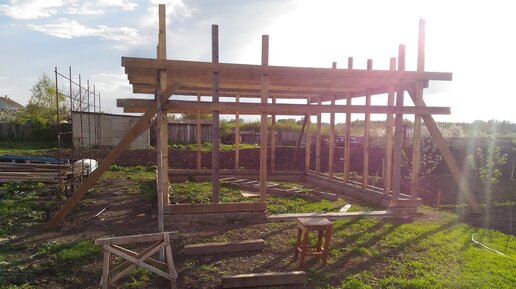 Гараж из бруса своими руками. Заливка фундамента и монтаж каркаса за 33 тыс.рублей.