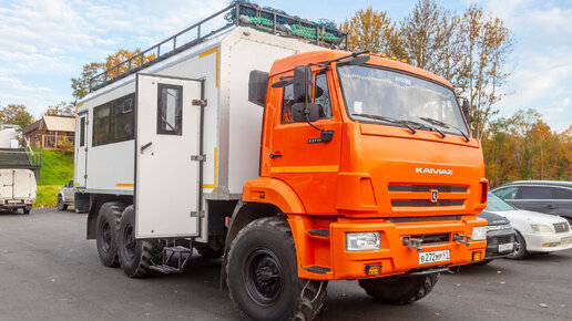 Если вы хотите перемещаться по Камчатке и другим отдаленным регионам России не только между городами и поселками, то транспорт нужен серьезный. Чаще всего, это будут либо подготовленные внедорожники, либо вахтовки на базе грузовых автомобилей повышенной проходимости. Например, на базе автомобиля Камаз-43118 со всеми ведущими 6 колесами. На автомобиле установлен дизельный двигатель объемом 10,85 литров и мощностью 300 лошадиных сил. Максимальная скорость 90 км/ч. На таком транспортном средстве нам довелось поездить на Камчатке...