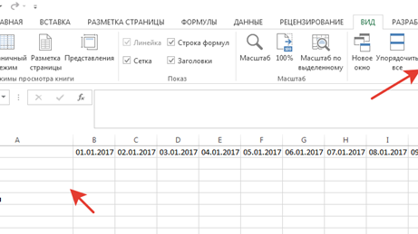 1. Выделим строку, снизу от строки, которую требуется закрепить. ... 2. Откроим вкладку Вид на Ленте. 3. Нажмем команду Закрепить области и из раскрывающегося меню выберем одноименный пункт. 4. Строки будут закреплены, а область закрепления будет обозначена серой линией. Закрепляем столбцы в MS Excel 2013 5...