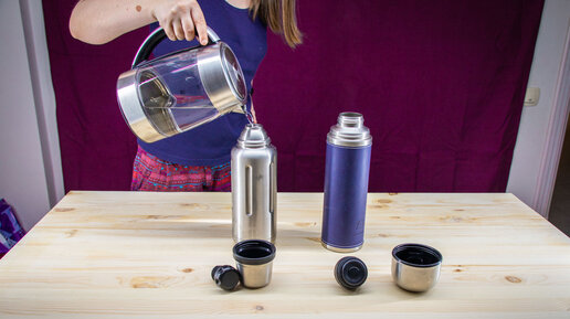 Взял два термоса и залил в них кипяток 100 градусов. Измерил температуру спустя 18 часов