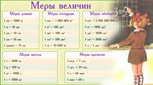 Многим ученикам трудно запомнить, сколько грамм в килограмме, сколько сантиметров в метре, сколько часов в сутках и т.д. А данная тема преследует с первого по одиннадцатый класс. Почти во всех проверочных по математике есть задания на перевод разных величин, сравнение и вычисления с ними. И здесь нет волшебной палочки, взмахнув которой вы все это моментально запомните. Учить меры величин нужно так, как учат стихи и таблицу умножения. Можно лишь немного облегчить себе этот процесс. Придумать или нарисовать себе ассоциации...