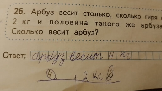 ШКОЛЬНИК2 года назадПодписатьсяАрбуз весит столько,сколько гиря в 2 кг и половина такого же арбуза.Сколько весит арбуз?