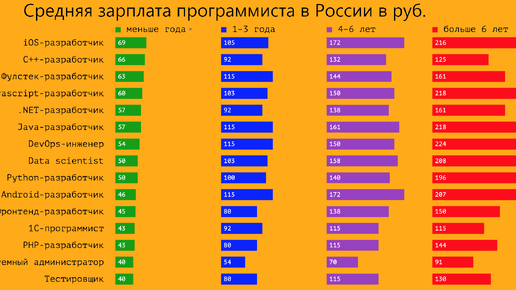 В этой статье я постараюсь рассказать сколько зарабатывают программисты в России так же в Европе Зарплата программистов зависит от их уровней, об этом я уже рассказывал в прошлой статье, так же от типа, опыта и на каком языке он пишет! Выше на фотографии есть средняя зарплата программистов в России в рублях. Зарплата программистов в России.