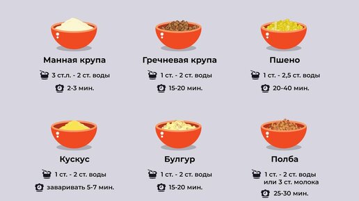 Чтобы из крупы приготовить идеальную кашу или вкусный гарнир, нужно точно знать, сколько нужно взять воды и сколько времени понадобится на готовку. От этого будет зависеть консистенция и вкус блюда. Читайте полный гид по технологии приготовления самых разных круп...
