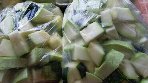 Приветствую, друзья! Многие заготавливают на зиму свои кабачки, но приготовить из них вкусное блюдо не всегда удается. Из своего опыта знаю, что действительно вкусно получается вот что: оладьи, суп-пюре и лодочки с мясом. После разморозки лодочки уменьшаются в объеме, но форму сохраняют, поэтому вполне успешно запекаются с мясной начинкой. Такие кубики можно добавлять в суп, вторые блюда, но мне нравится больше суп-пюре. Именно в нем сказывается насыщенный вкус летнего кабачка. А вот в таком виде я заготавливаю кабачки для оладьев...