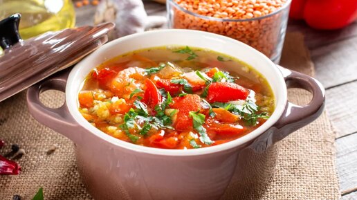 Пряный суп с чечевицей и болгарским перцем