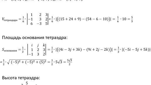 Объем, высота и площадь основания ТЭТРАЭДАРА по координатам (векторам)