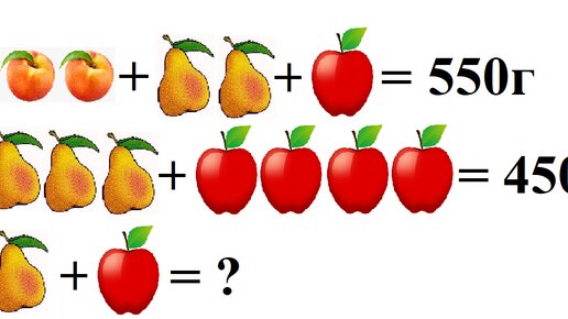 Сколько будут весить один персик вместе с одним яблоком и одной грушей?