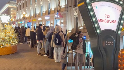 На Арбате весь день стоит огромная очередь из желающих узнать свой вес в мандаринах