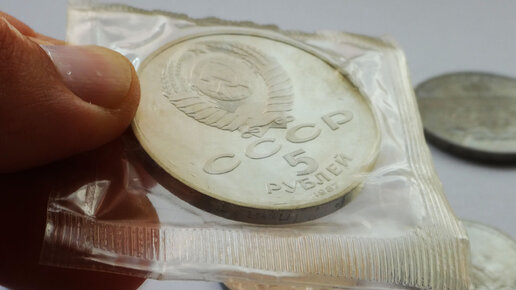 Самая большая монета выпущенная в СССР В моих руках самая большая монета 5 рублей выпущенная в оборот в годы СССР. Эта монета из моей личной коллекции и находится в упаковке (блистере) с момента ее выпуска...