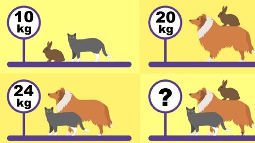 Подобные задачи - хорошая разминка для ума! Здесь нужно не просто угадать вес, а нужно представить алгоритм решения. Даны следующие условия: Чему равен вес собаки, кошки и кролика = ? Решите задачу с помощью...