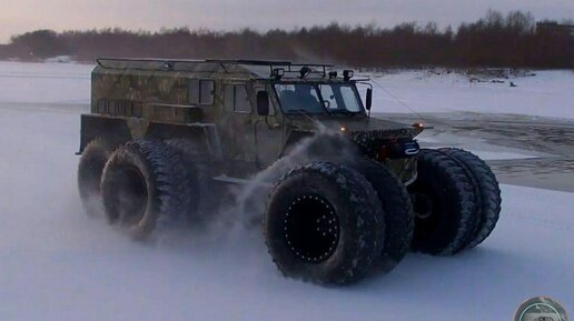 Привет, Друзья! Сегодня хочу сделать обзор вездехода по прозвищу-Хищник! Он обладает сверх проходимыми возможностями. Легко преодолевает глубокий снег, топкие болота, пески и отлично может переплыть водные преграды, что зимой, что летом. С помощью дополнительных колёс с легкостью ныряет в воду и без проблем выбирается на лёд обратно. Вы только посмотрите! Въезжает задним ходом в воду и выбирается обратно. Находясь за рулём этого вездехода начинаешь чувствовать себя королём бездорожья...