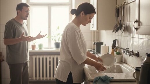 Вечер уже опускался на дом. Кухня была залита последними лучами солнца: они пробивались через окно и ложились на столешницу тёплыми полосами. Елена стояла у раковины и мыла посуду после ужина. Руки у неё были в мыльной пене, лицо — усталое, но сосредоточенное. За окном ещё держался свет — один из тех майских вечеров, когда день не хотел уходить и цеплялся за горизонт. Сергей вошёл в кухню, оценивающе оглядел комнату, заметил включённую лампу над столом и решительно щёлкнул выключателем. Свет погас...