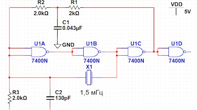 Кратко рассматривается простая схема кварцевого генератора с делителем, с скважностью 2. Задача: получить меандр со скважностью  2 и частотой в пределах 8-10 кГц для дальнейшего использования в блоке развертки стробоскопической приставки к осциллографу...