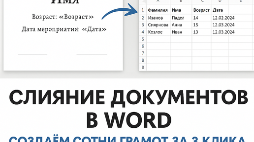 Слияние документов в Word: автоматическая генерация грамот, писем и шаблонов за 3 клика. Научитесь использовать функцию «Слияние» в Word для массовой печати грамот, писем и табелей: подключение Excel, вставка переменных, настройка шаблона и предварительный просмотр. Слияние документов в Word: создаём сотни грамот и писем в 3 клика. ЧАСТЬ 1 Слияние документов в Word: фильтры, условные поля и автоматизация через макросы. ЧАСТЬ 2 Вам приходилось вручную копировать один и тот же документ 50 раз, чтобы...