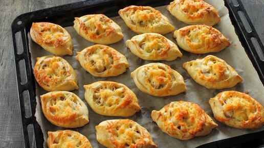 Эти пирожки даже лепить не над беру слоеное тесто и в духовку весь секрет в начинке