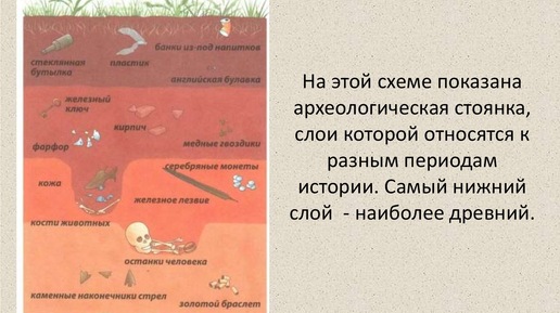 Определение культурного слоя. Культурный слой – это слой почвы (земли, грунта), с явными включениями материальных следов жизнедеятельности человека. Чаще всего возникает в местах более-менее оседлого проживания людей (поселения, городища). Может, как выходить на поверхность, так и, если поселение исчезло очень давно, находиться под толстым слоем пустого грунта. Культурный слой включает в себя: - фрагменты предметов быта, - керамики, - остатки костей домашних животных, - остатки кострищ и хозяйственных ям, - руины строений, - жилищ или крепостей...