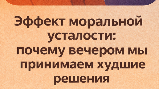 Эффект моральной усталости: почему вечером мы принимаем худшие решения