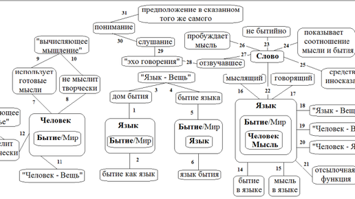 Прежде скажем: Язык - это творение Бога, которым он одарил нас. Человек по сути своей разум, его центр - это разум, а язык его разума, а значит и самого человека, - это мышление. Мышление тождественно изречению, ибо внутри разума и снаружи его не существует ничего, кроме языка, который делает мир и разум самими собой. Если сердцевина человека - это разум, то сердцевина разума - это язык, создающий мир, вне которого разум не существует и не может быть, ибо быть вне-разума, сиречь быть безъязычным - значит не существовать как человек...