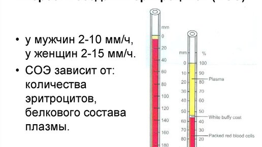 Кровь внутри сосудов имеет красный цвет за счет того, что эритроциты и лейкоциты равномерно перемешаны с плазмой. Но если поместить кровь в пробирку, через несколько часов все клетки осядут на дно. Разделение крови на плазму и концентрат из красных и белых клеток должно происходить с определенной скоростью. Врачи давно подметили это свойство крови, вычислили закономерности у больных и здоровых людей. Сегодня скорость оседания эритроцитов, или сокращенно СОЭ, — это важный диагностический критерий...