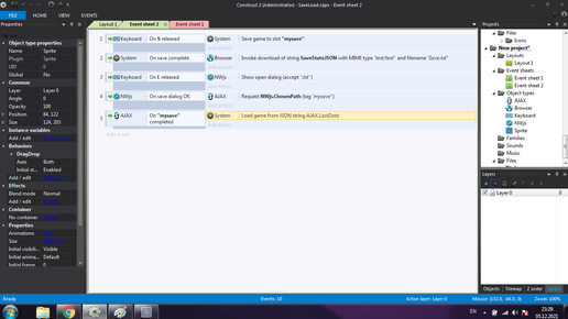 Construct 2. Создание системы сохранений.