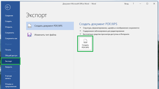 Как сохранить документ Word в формате PDF
